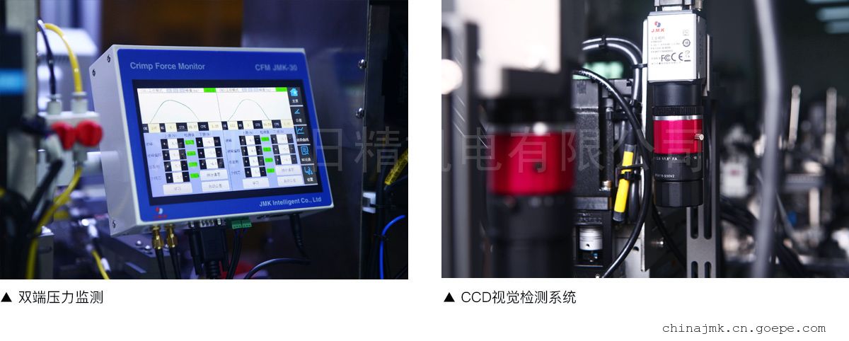 日精智能JM-600全自动双头端子插壳机,采用PC数控系统,计算机数控人机交互界面,触控键鼠双输入,操作简单易上手,生产管理更方便。可选装压力监测系统和CCD影像检测系统,实时显示产品影像和压接力曲线,并进行对比分析、压接不良时会发出警报并自动分拣出不良品。加工全过程质量监控,节省了人工成本,保证产品质量,提高了生产效率。 产品展示 JM-600 全自动双头端子插壳机
