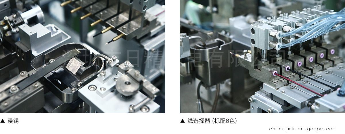 电线定长切断、两端剥皮、单头压着、单头插壳、单头浸锡。