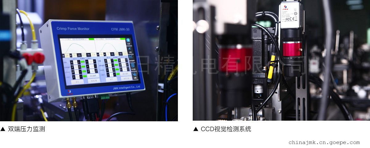 JM-601A可选装压力监测系统和CCD影像检测系统,能够实时显示产品影像和压接力曲线,并进行对比分析、压接不良时会发出警报并自动分拣出不良品。加工全过程质量监控,节省了人工成本,保证产品质量,提高了生产效率。